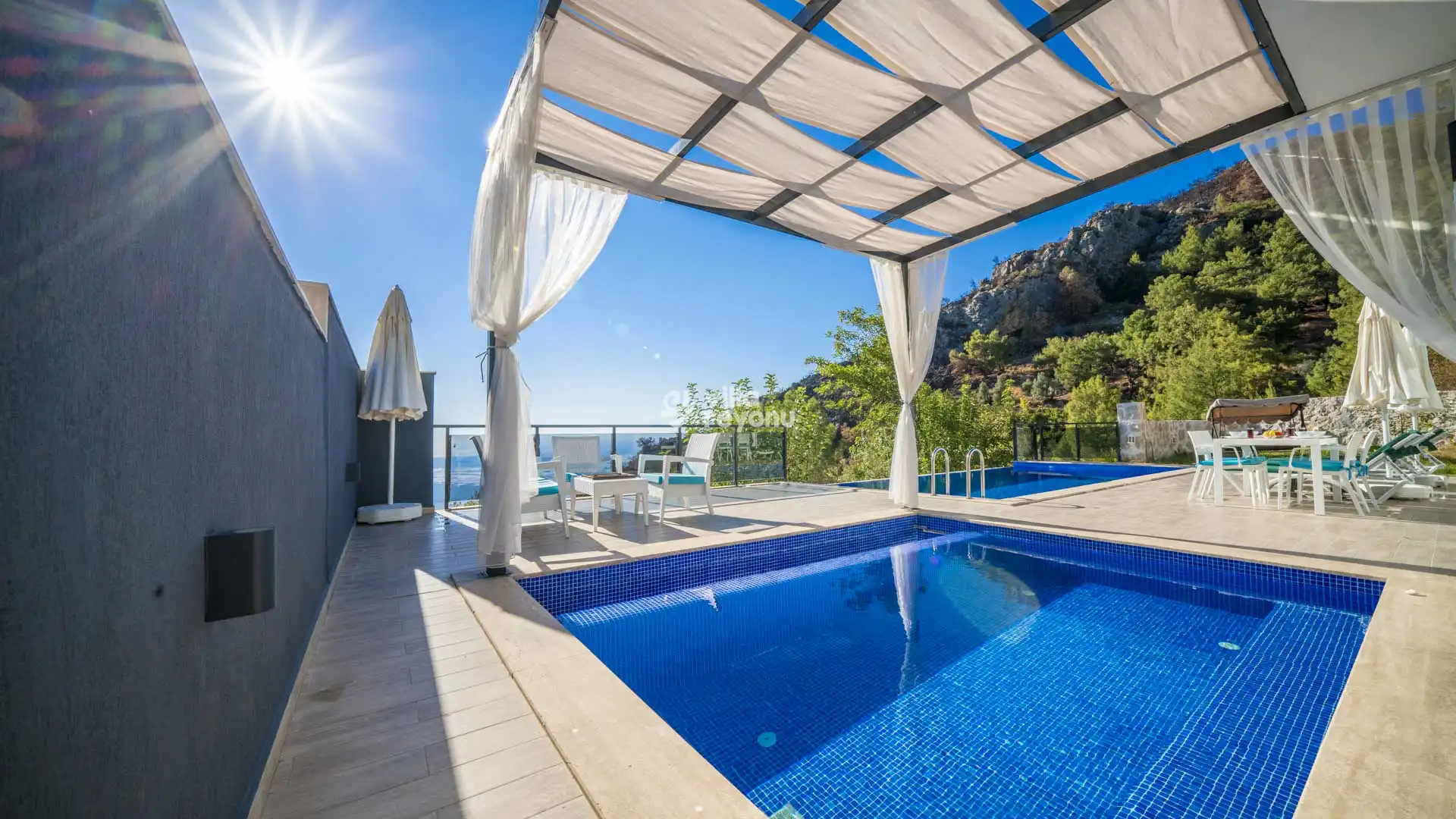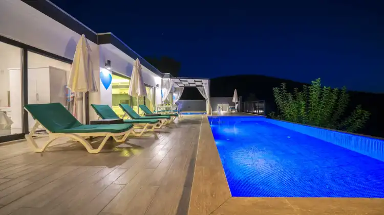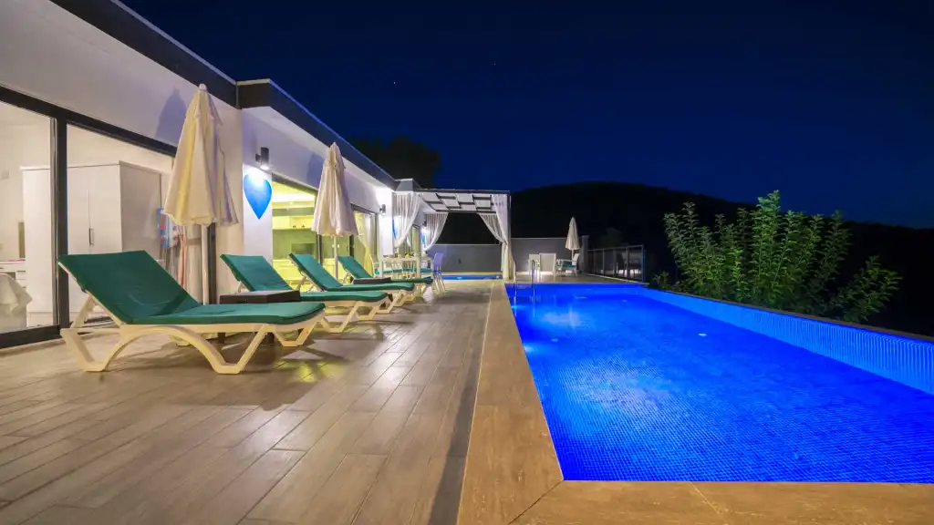 Villa Vorante, Kalkan’ın Üzümlü Lapaz mevkisinde yer alan şık ve konforlu bir kiralık tatil villasıdır. 4 kişilik konaklama kapasitesine sahip olan bu özel villa, balayı çiftleri için özenle tasarlanmıştır. Masaj özellikli havuzu ve jakuzisi ile konforlu bir tatil imkanı sunan Villa Vorante, doğayla iç içe, şehir gürültüsünden uzak huzurlu bir atmosferde dinlenmek isteyen misafirler için mükemmel bir tercihtir. Korunaklı havuz terası sayesinde muhafazakar aileler ve balayı çiftleri için de uygundur