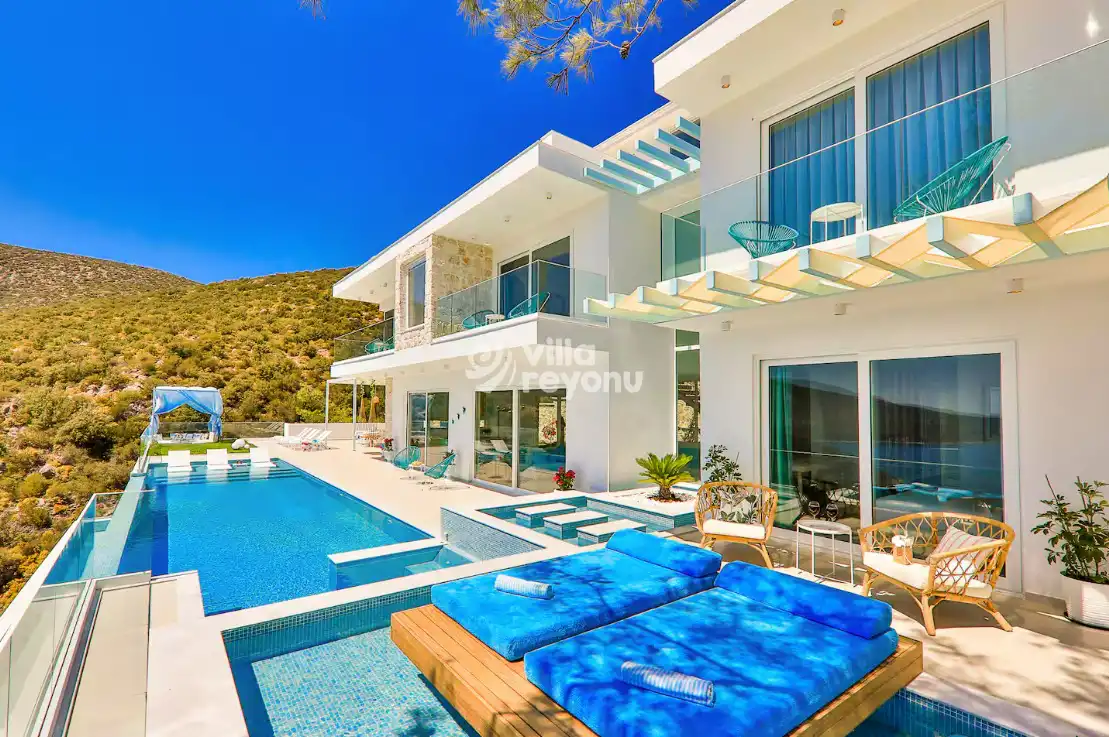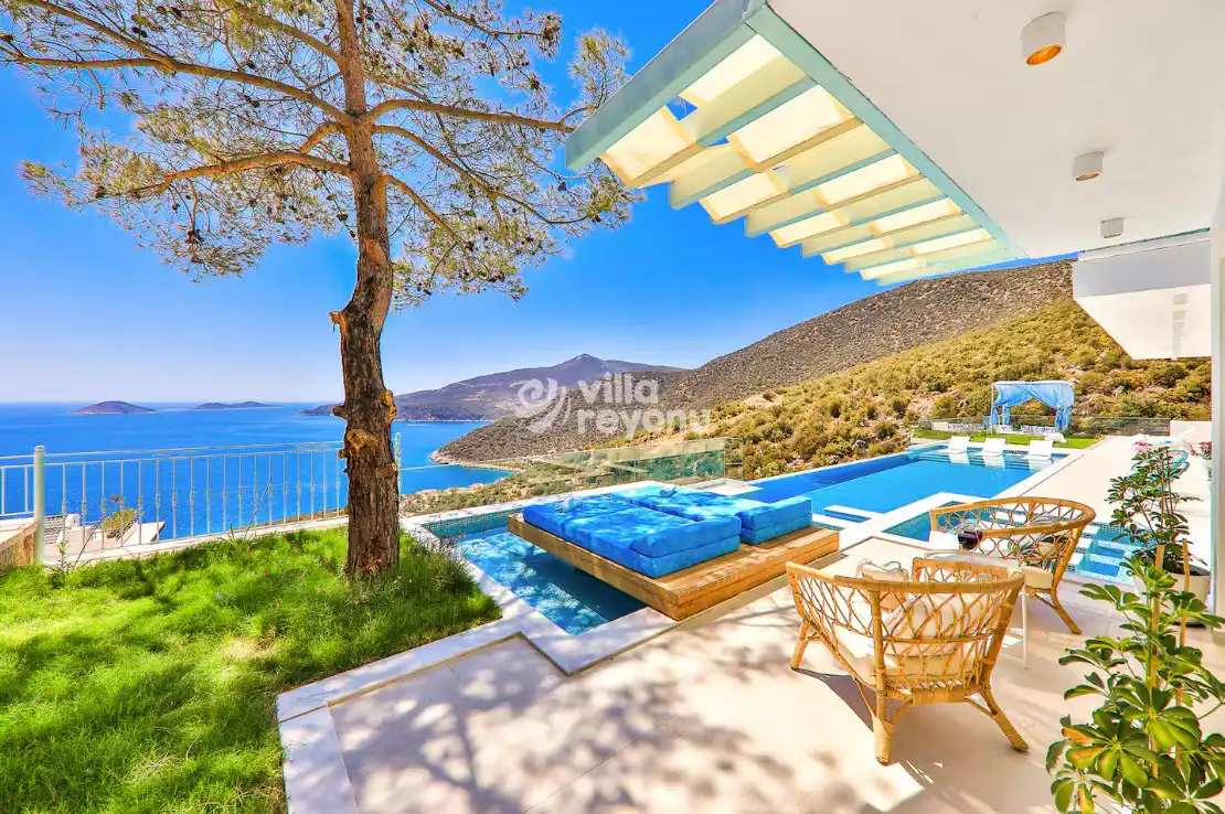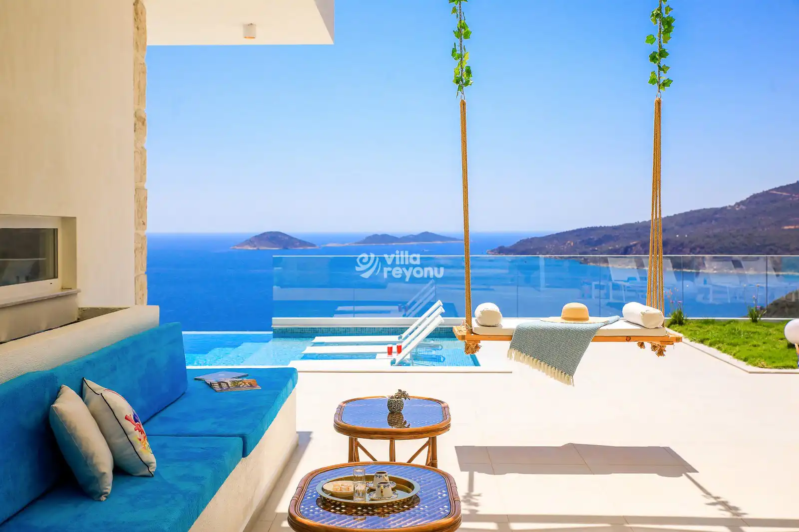 Villa Wren 2, Kalkan’ın Kalamar mevkiinde yer alan, lüks konseptte tasarlanmış özel bir tatil villasıdır. Kalamar Plajı’na yürüyüş mesafesinde bulunan villa, on kişiye kadar konaklama kapasitesine sahiptir. Kalamar Koyu’nun benzersiz güzelliğini, masmavi denizini ve adaları gözler önüne seren kesintisiz manzarasıyla Villa Wren 2, en özel anlarınıza ev sahipliği yapacak seçkin bir konaklama alternatifidir.