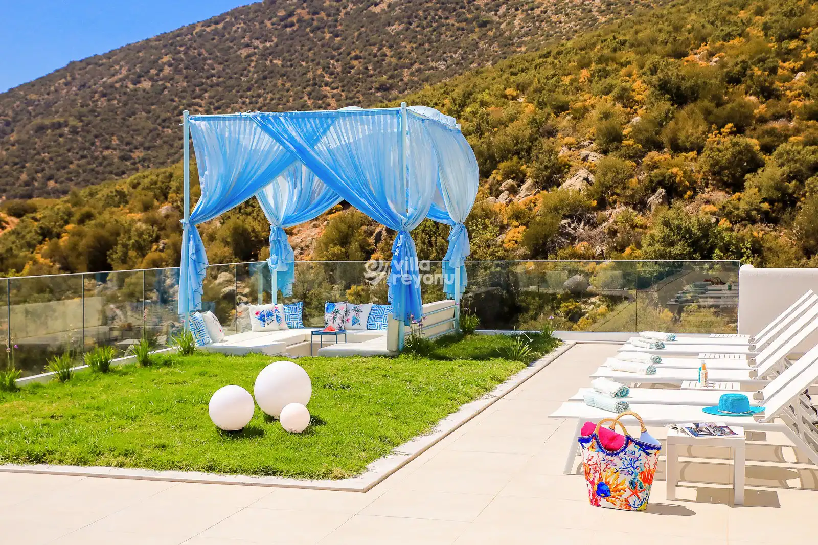 * Doğa içerisinde bulunan tüm villalarımızda düzenli olarak ilaçlama yapılmaktadır. Ancak yine de çevrede kelebek, böcek, sinek vb. bulunma ihtimali bulunmaktadır.