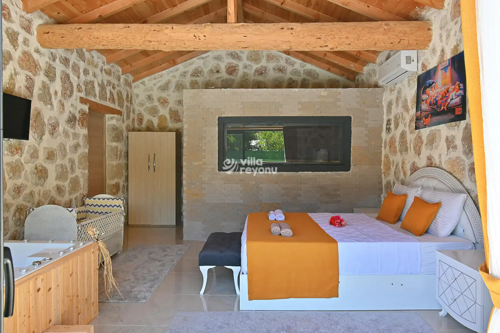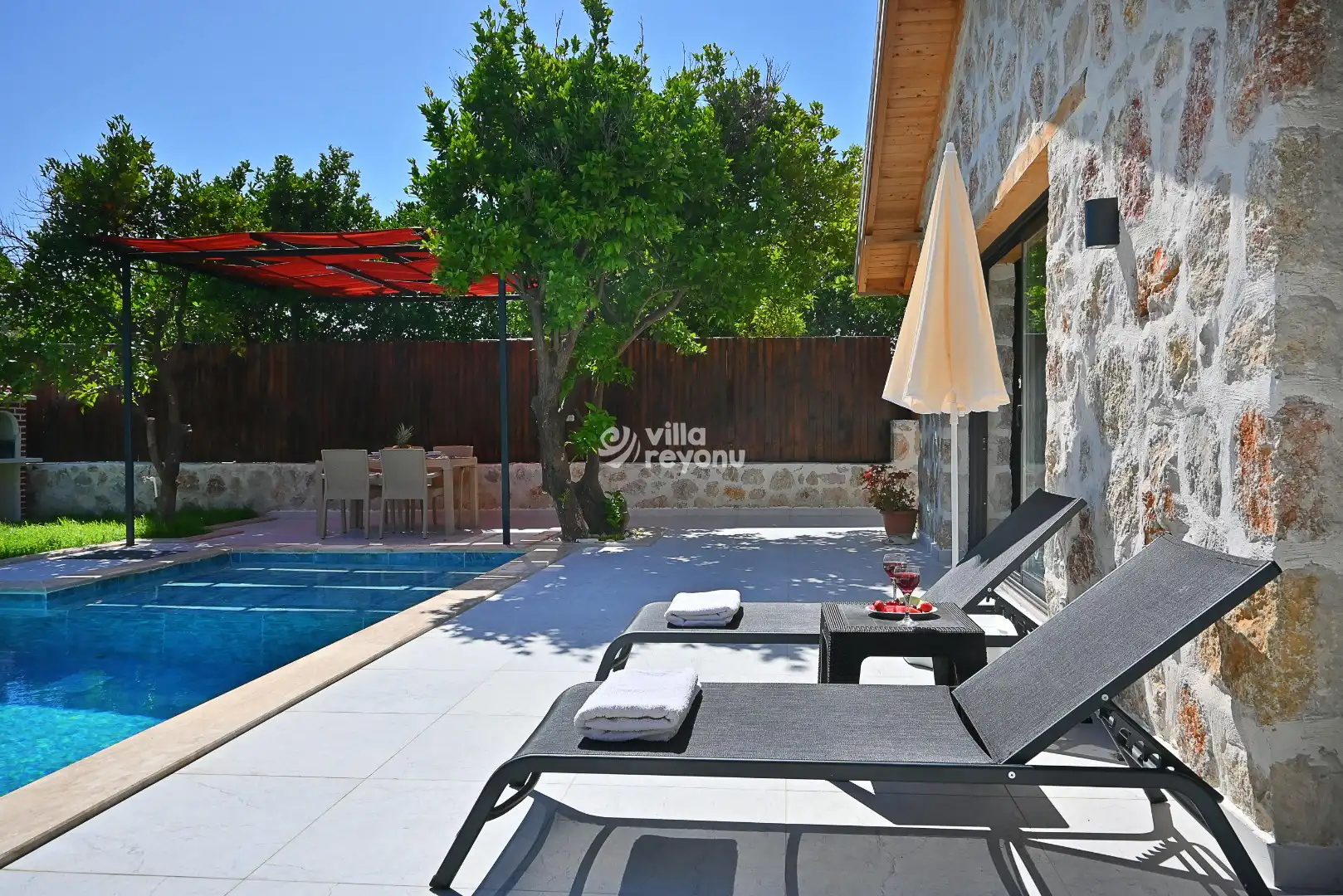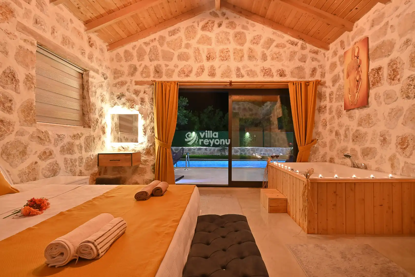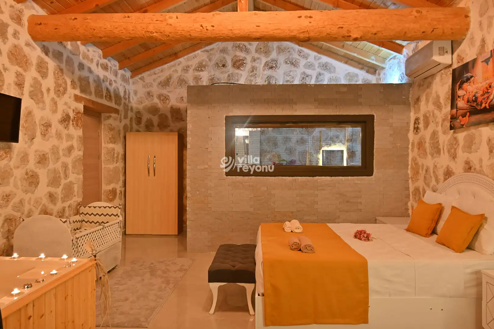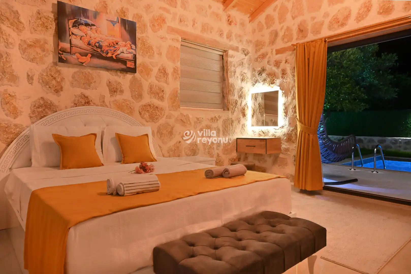 Kalkan’ın Yeşilköy mevkiinde konumlanan, doğa manzarasına sahip villamız; sakinliği, mahremiyeti ve huzuru ön planda tutan misafirler için özel olarak tasarlanmıştır. Korunaklı yapıya sahip olan villamız, tek yatak odasıyla 2 kişilik konaklama kapasitesi sunmakta olup özellikle balayı çiftleri ve muhafazakâr aileler için ideal bir konaklama seçeneğidir.
