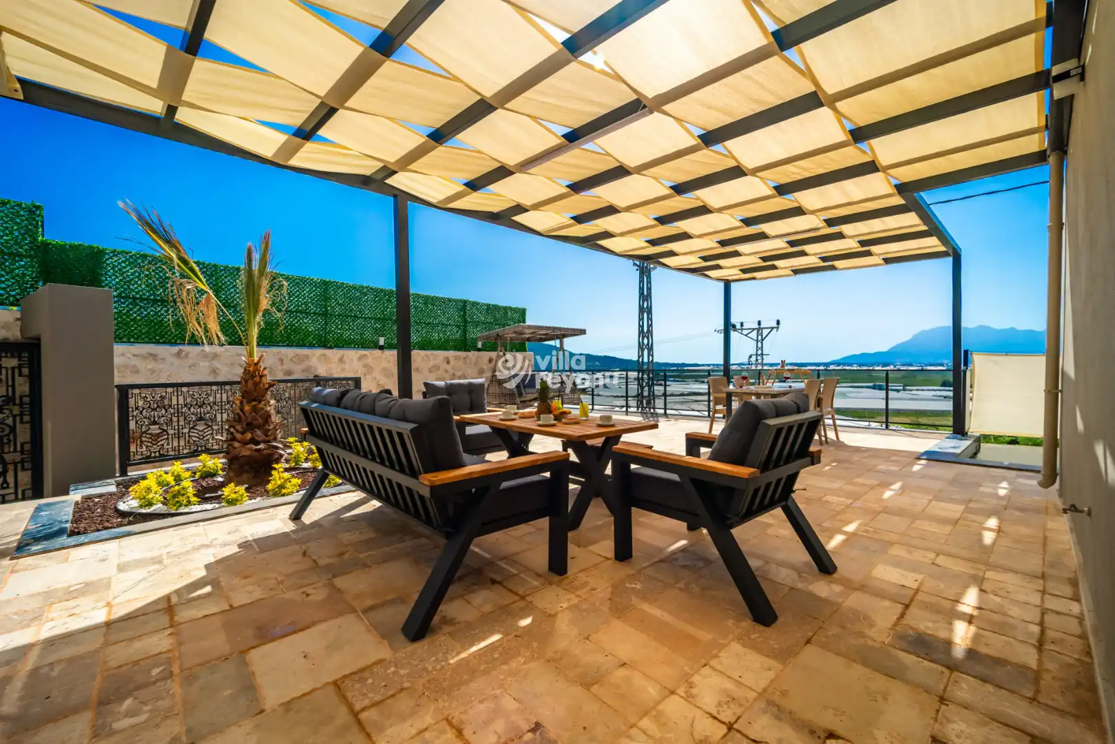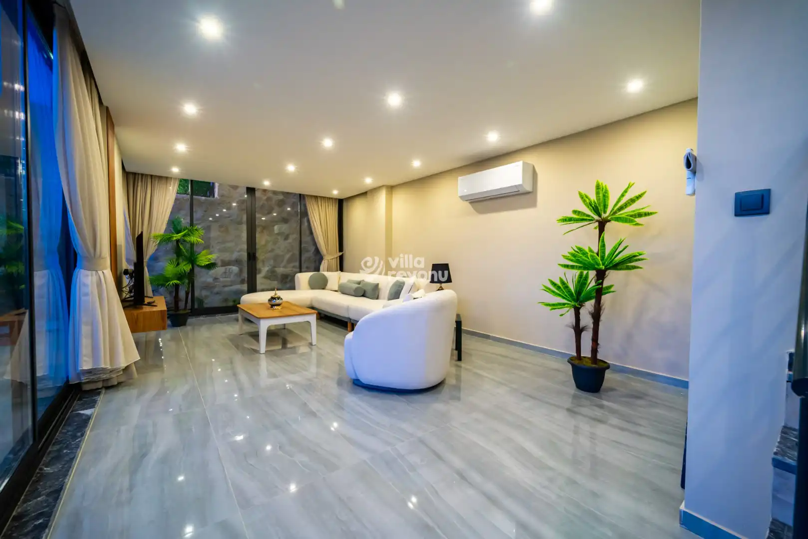 Muhafazakâr konseptte tasarlanan Villa Zenos, özellikle mahremiyet arayan misafirler için ideal bir tercihtir. Havuz alanı dışarıdan görünmeyecek şekilde planlanmış olup, ilave perde sistemiyle korunaklı hale getirilmiştir.